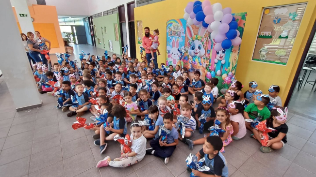 Prefeito Juninho Rogante e secretária Renata Paloschi realizam entrega de ovos de Páscoa para alunos da rede municipal, espalhando sorrisos e carinho por toda a cidadeA magia da Páscoa tomou conta das escolas da rede municipal c