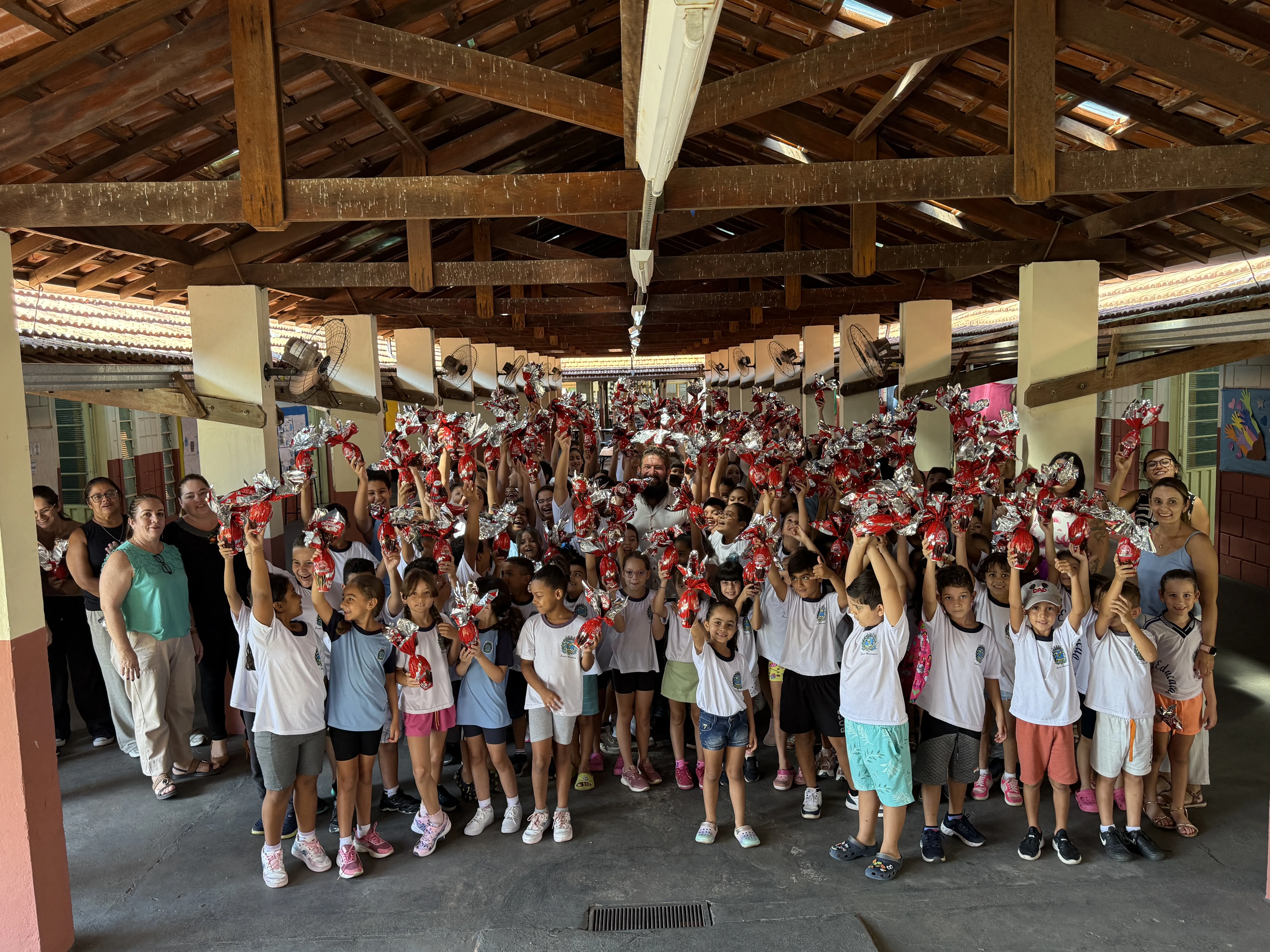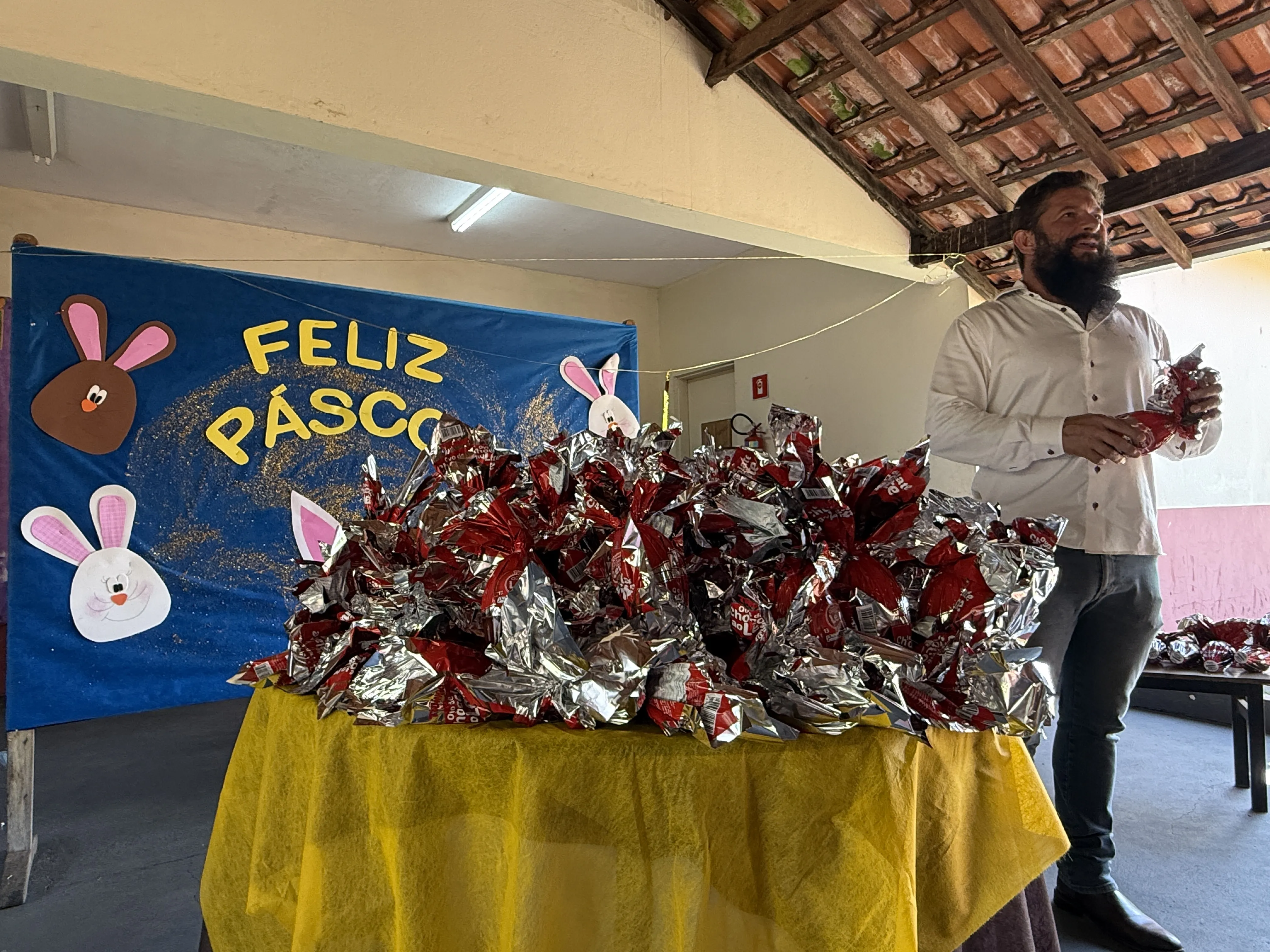 Prefeitura municipal realizou a entrega de ovos de chocolate ao leite em todas as escolas do município, APAE e Asilo São Vicente de Paulo.