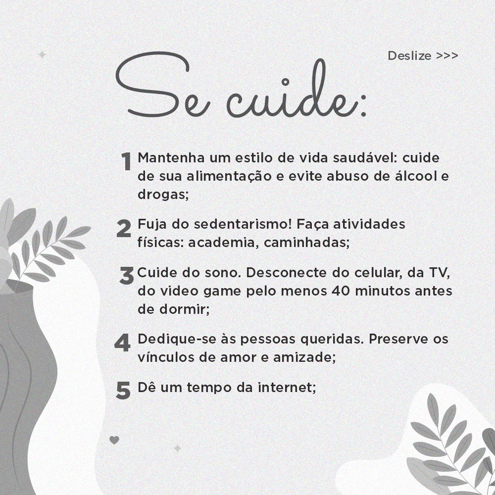 Confira algumas dicas nas imagens abaixo e coloque em prática tudo aquilo que é recomendado para ter mais qualidade de vida!